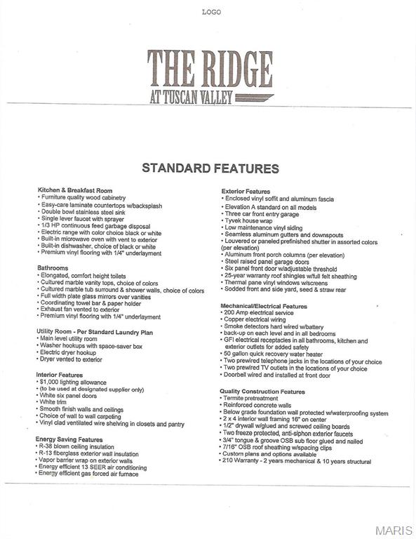 Please, review the New Custom Homes Available, the Standard Features Brochure and the Plat Map