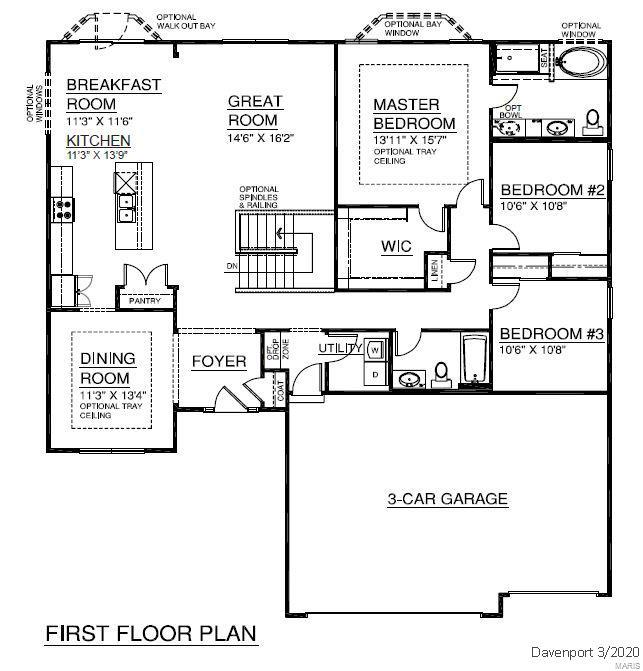 The DAVENPORT by Consort Homes. BASE PRICE* 1,870 sq ft, 3 bed, 2 bath, ranch home. The open floorplan offers flexible living space including spacious Kitchen adjoining Breakfast Room and Great Room plus separate Dining Room. The well-designed Kitchen workspace features plenty of cabinetry, island and pantry. Main floor laundry. Main floor Master Bedroom Suite with private bath. Some options include tray ceilings in Master Bedroom or fireplace and/or window wall in Great Room. Some INCLUDED Features: 9' main floor ceiling heights, 3-car garage, High efficiency HVAC & appliances, Sealed ductwork, House wrap, Air infiltration/Energy seal package, Premium wood construction, Low E vinyl windows, 50-gallon water tank, sump pump/pit, Brushed nickel plumbing & light fixtures, fully sodded yard and more. Personalize your home with the assistance of our design consultant! Photos are of a previously built Davenport. COOL: 14 SEER+