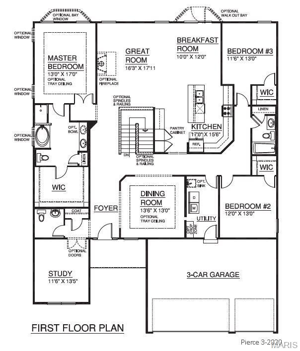 The PEIRCE by Consort Homes. BASE PRICE* 2,572 sq ft, 3-4 bed, 2.5-3 bath, ranch home. The open floorplan offers flexible living space including spacious Kitchen adjoining Breakfast Room and Great Room plus separate Dining Room. The standard plan also includes a Study and all bedrooms have walk-in closets. The well-designed Kitchen workspace features plenty of cabinetry, island and pantry. Main floor laundry. Main floor Master Bedroom Suite with private bath. Some options include Bedroom ILO Study; tray ceilings in MBR or Dining; window wall and/or fireplace in Great Room; and optional bath layouts. Some INCLUDED Features: 9' main floor ceilings, HE HVAC & appliances, Sealed ductwork, House wrap, Air infiltration/Energy seal package, Premium wood construction, Low E vinyl windows, 50-gal water tank, sump pump/pit, fully sodded yard and more. Personalize your home with the assistance of our design consultant! COOL: 14 SEER+