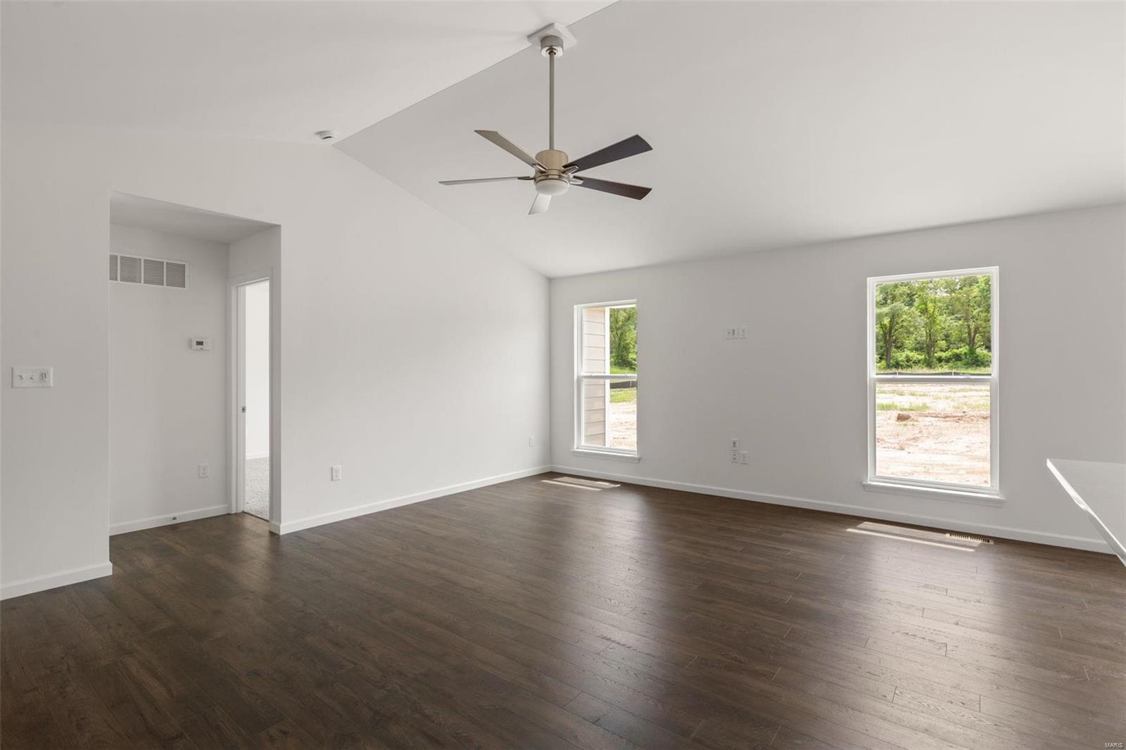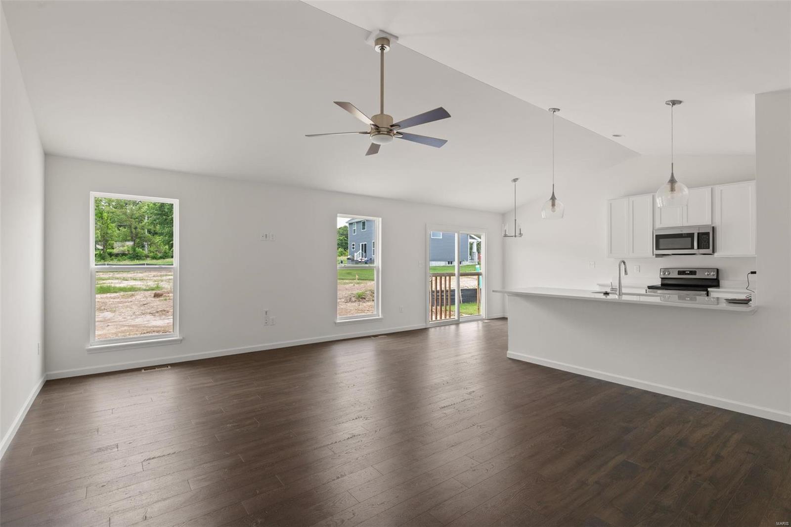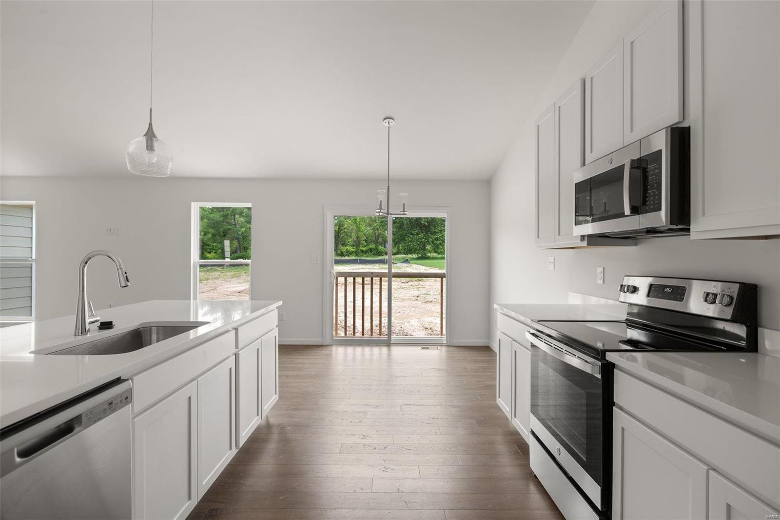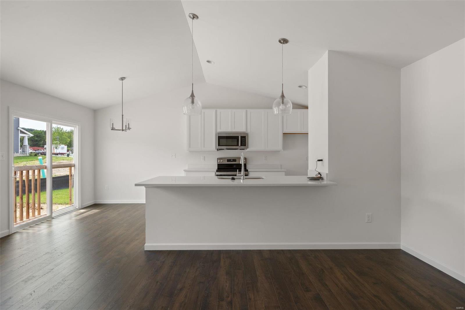 New McBride Homes Aspen ranch home has 3BR, 2BA and will be ready in Spring! Walkout homesite! Vaulted ceilings and wood laminate flooring in main living areas. The kitchen features painted white 42 inch tall kitchen cabinetry, quartz countertops, peninsula with breakfast bar for additional seating, and stainless steel GE appliances. The master suite features a walk in closet, and private master bath features an adult height vanity with double sinks and 5Ft walk-in shower. Two additional bedrooms and full bath. 6ft windows, ceiling fan prewires, first floor laundry, coachlights at garage, and white two panel doors throughout. Lower level features ¾ bath rough in. The neighborhood is also just minutes away from shopping, restaurants, grocery stores, & more. Enjoy peace of mind with McBride Homes’ 10 year builders warranty and incredible customer service!