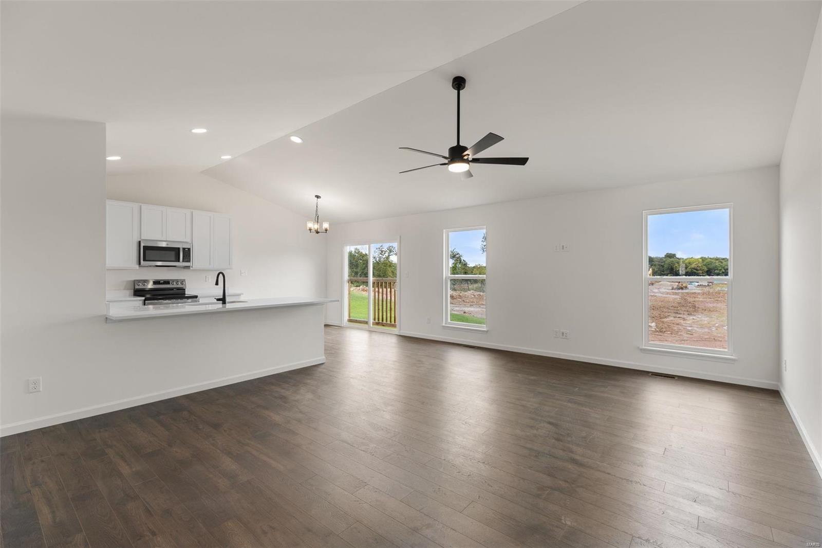New McBride Homes Aspen ranch 3BR, 2BA is READY NOW! Craftsman exterior & walkout homesite! The open floor plan has a vaulted ceiling, large great room with ceiling fan, & wood laminate flooring on main level. The kitchen has level 4 painted white 42” tall cabinetry, quartz countertops, peninsula w/extended breakfast bar, stainless steel GE appliances & sliding glass door to the backyard. The master suite has a ceiling fan, walkin closet & private master bath w/dual sink vanity & 5’ walkin shower. 2 add’l bedrooms & full bath add convenience. Upgrades include 6’ windows, upgraded lighting/plumbing fixtures, ceiling fan prewires, 1st floor laundry, garage coach lights & 2 panel interior doors. LL ¾ bath roughin for future finish. Westhaven is in the Wentzville School District & is off Peine Road, just minutes from Hwy 61 & easy access to both Highway 40 & I-70. Enjoy peace of mind with McBride Homes’ 10 year builders warranty and incredible customer service! Similar photos shown.