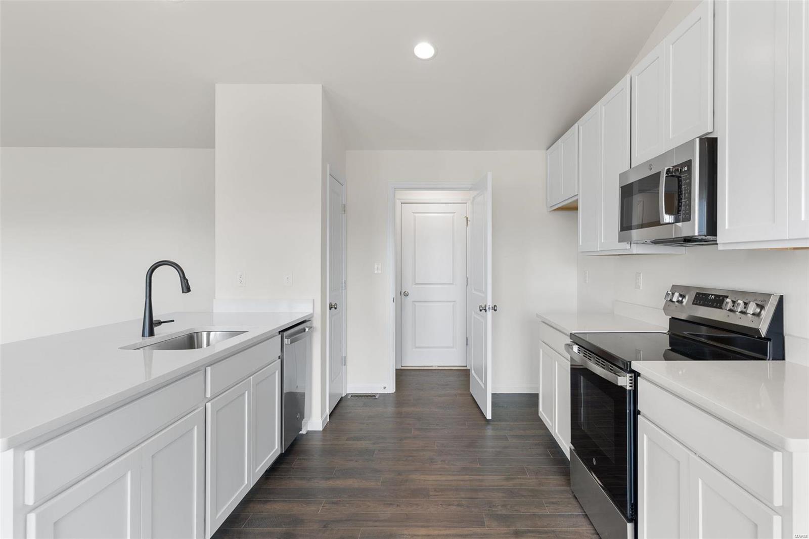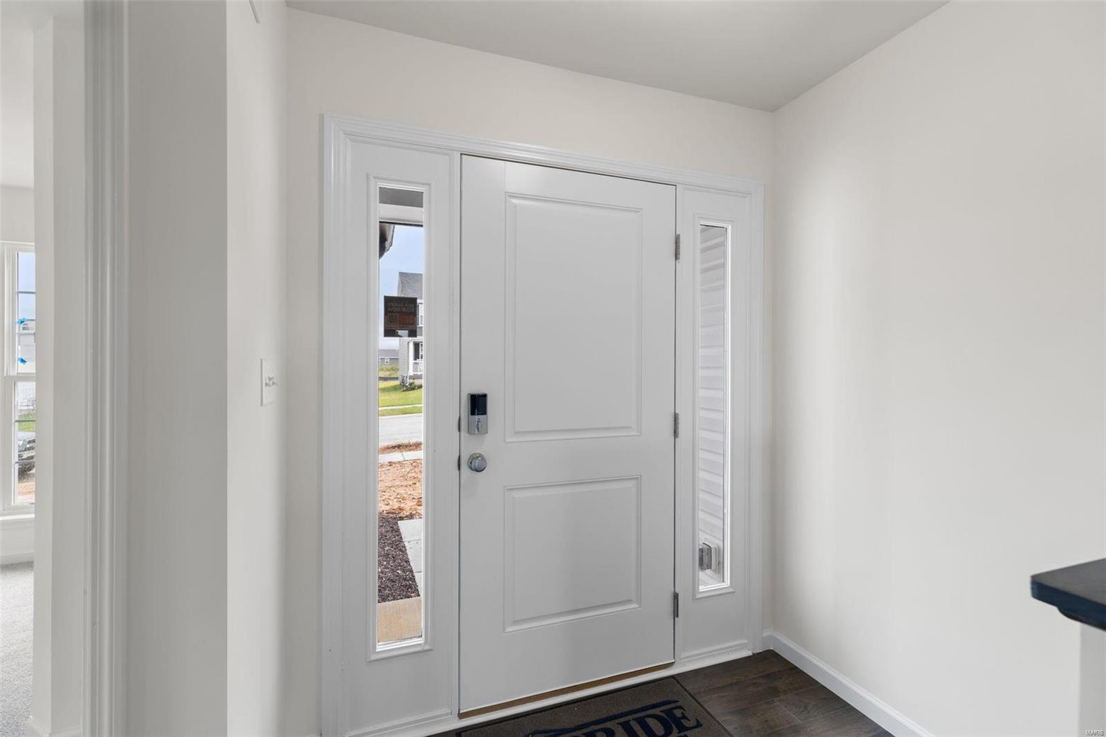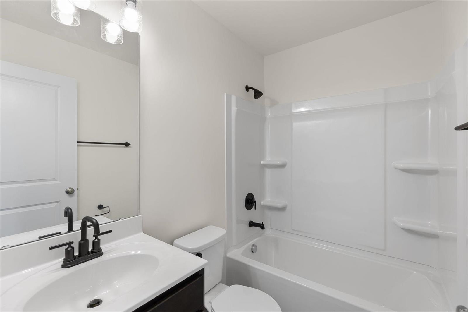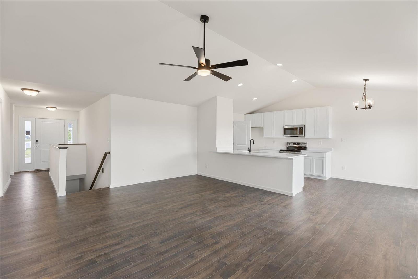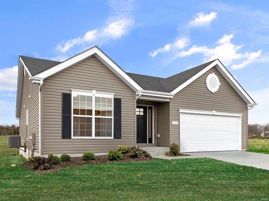 New McBride Homes Aspen ranch home has 3BR, 2BA is READY NOW! Enjoy an open floor plan with vaulted ceilings and wood laminate flooring in main living areas. The kitchen features level 4 Benton Painted White 42-inch-tall kitchen cabinetry, quartz countertops, peninsula with extended breakfast bar for additional seating, and stainless-steel GE appliances. The master suite features a walk in closet, and private master bath with an adult height vanity with double sinks, plus a 5Ft walk-in shower. Two additional bedrooms and full bath add convenience. This home also features 6ft windows, ceiling fan prewires, first floor laundry, coach lights at the garage, and white two panel interior doors throughout. Lower-level features ¾ bath rough in. Located in House Springs, this community features 263 homesites off Bear Creek Road, just east of Gravois Road and Carol Park Road. Enjoy peace of mind with McBride Homes’ 10 year builders warranty and incredible customer service! Similar photos shown.