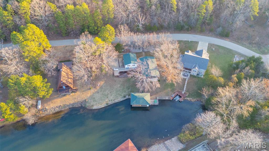 Step into this charming lakeside home that boasts 4 bedrooms and 2 full baths! Sitting on a double lot right on Lake Carmel, you can enjoy the view from the large wooden deck wrapping around the house, the screened-in patio downstairs, the swimming pool, or the boat house! This home has been maintained very well and a new roof was installed within the past 2 years. A large, detached 2-car garage is connected to the home by the deck. The updated kitchen and open living/dining space, complete with new wood flooring, are on the main floor, as well as the primary bedroom. There are 3 bedrooms downstairs, one of which could be converted into an In-Laws Suite. The downstairs family room features a fireplace and a walk-out to the patio. From there, you can walk down to the boat house to enjoy the peaceful lake life and community of Terre Du Lac!