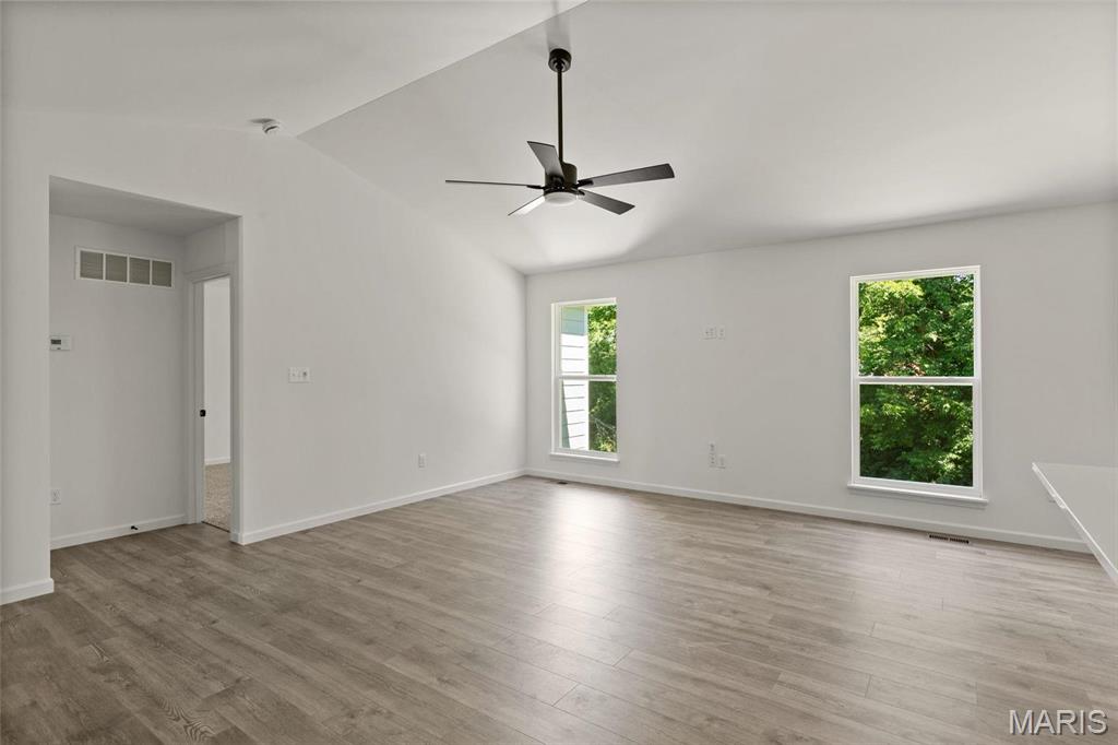 New McBride Homes Aspen ranch 3 BR & 2 BA, available this summer! Experience an open floor plan with vaulted ceilings, great room with a ceiling fan & wood laminate flooring in the main living area. The kitchen has level 4 Brellin White 42” tall kitchen cabinetry, quartz countertops, peninsula w/flush breakfast bar for additional seating, & stainless GE appliances. The master suite has a walk-in closet,& private master bath with a double sink vanity & 5’ walk-in shower. 2 extra bedrooms & full bath add convenience. Other extras include 6’ windows, ceiling fan prewires, main floor laundry, garage coach lights, & white 6 panel interior doors throughout. Plus a ¾ bath rough in at lower level. Winding Bluffs Addition offers new homes in the Fenton area, minutes from Gravois Bluffs. Amenities include a pickleball court, athletic field, dog park, trails, & community lake. Enjoy peace of mind with McBride Homes’ 10yr builders’ warranty & incredible customer service! Similar photos shown.