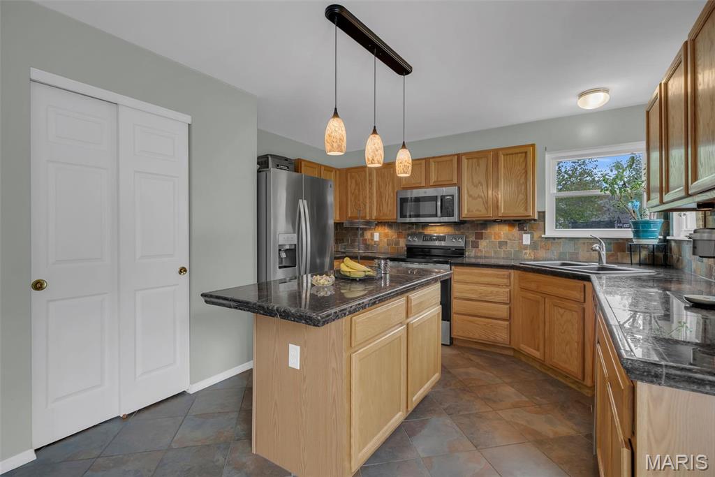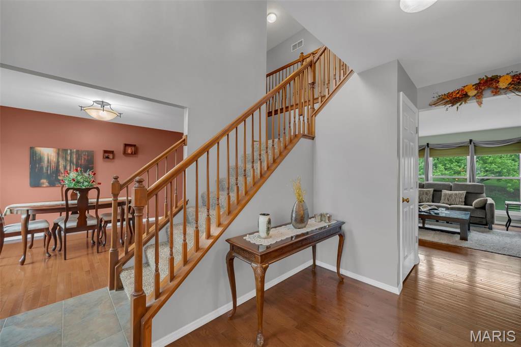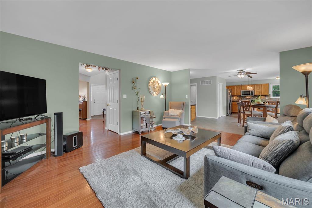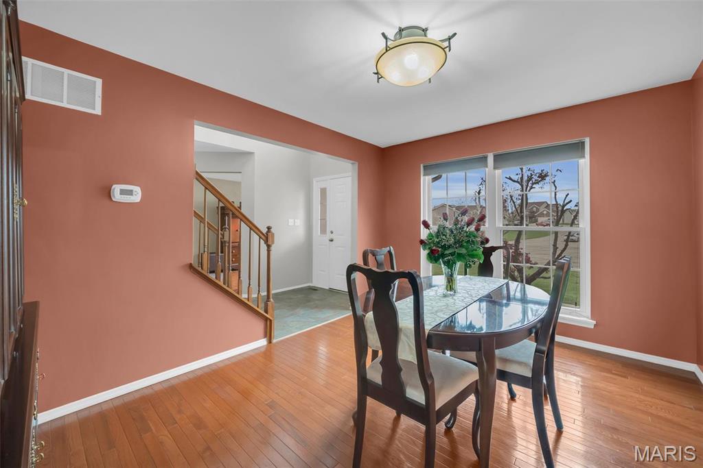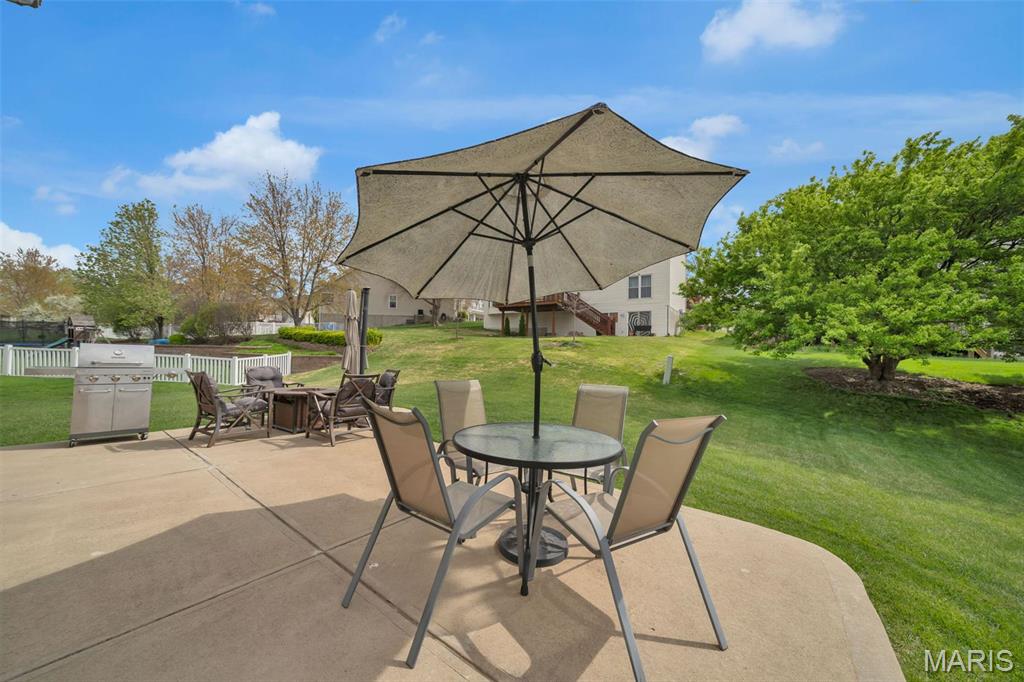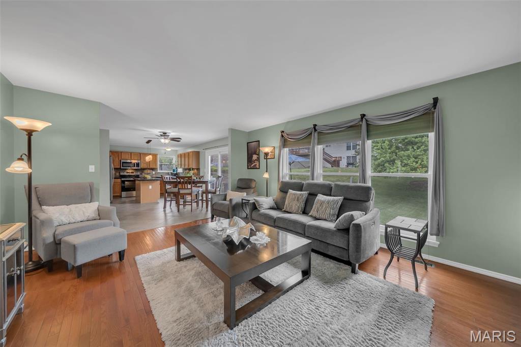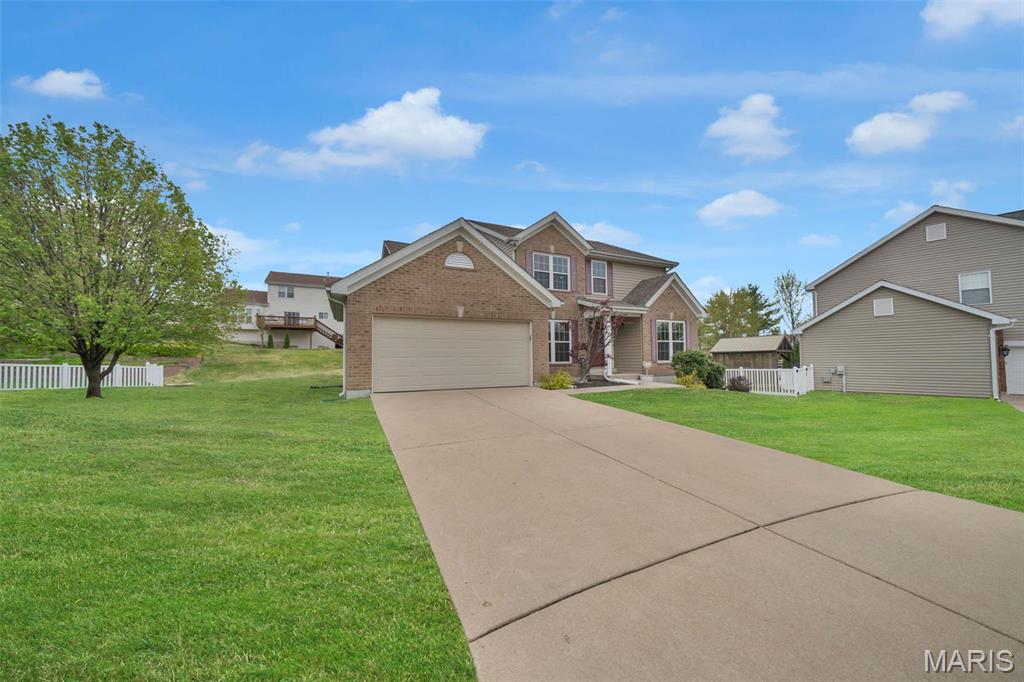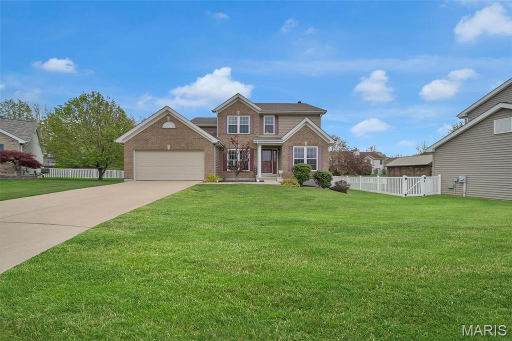 This immaculate 2-story with a finished lower level is located in a great neighborhood just off Highway K, super close to O'Fallon's outstanding shopping, dining, & entertainment venues with easy access to I-70/364 to get anywhere. Rich hardwood floors lead from the front door to the inviting family room with a fireplace. Spacious kitchen features stainless steel appliances, including a BRAND NEW (2025) range...fridge stays! Granite counters & tumbled stone backsplash are illuminated by undercabinet lighting. Share meals in the formal dining room or the breakfast room with glass-enclosed blinds in the sliding door that leads to the oversized patio in the level, irrigated yard. Main level home office with tall vaulted ceilings. Head up the T-staircase to find a luxurious primary suite with 2 closets & an impressive updated bath with dual sinks, soaking tub & separate shower. Durable, low-maintenance laminate plank floors in all 4 bedrooms. Invite family and friends to hang out in the lower level rec room with a full bath. Neighborhood pool & tennis/pickleball/basketball courts. Ft Zumwalt (South High) Schools. What an opportunity! See it today!