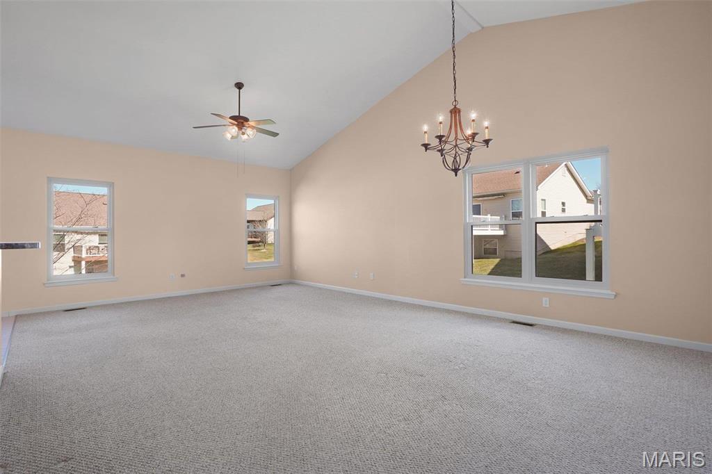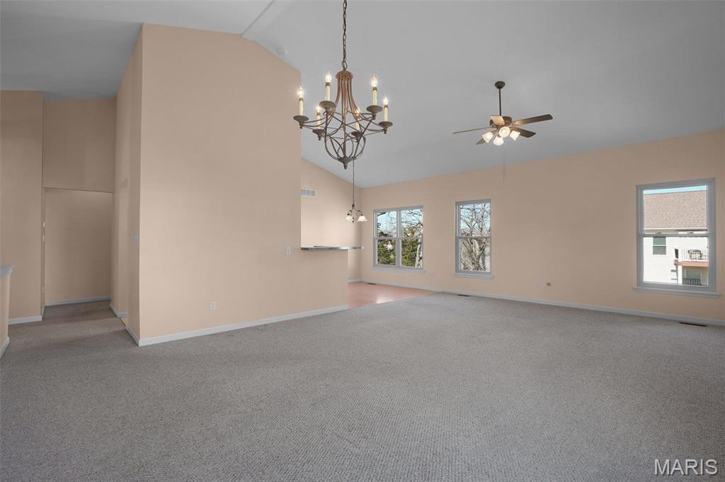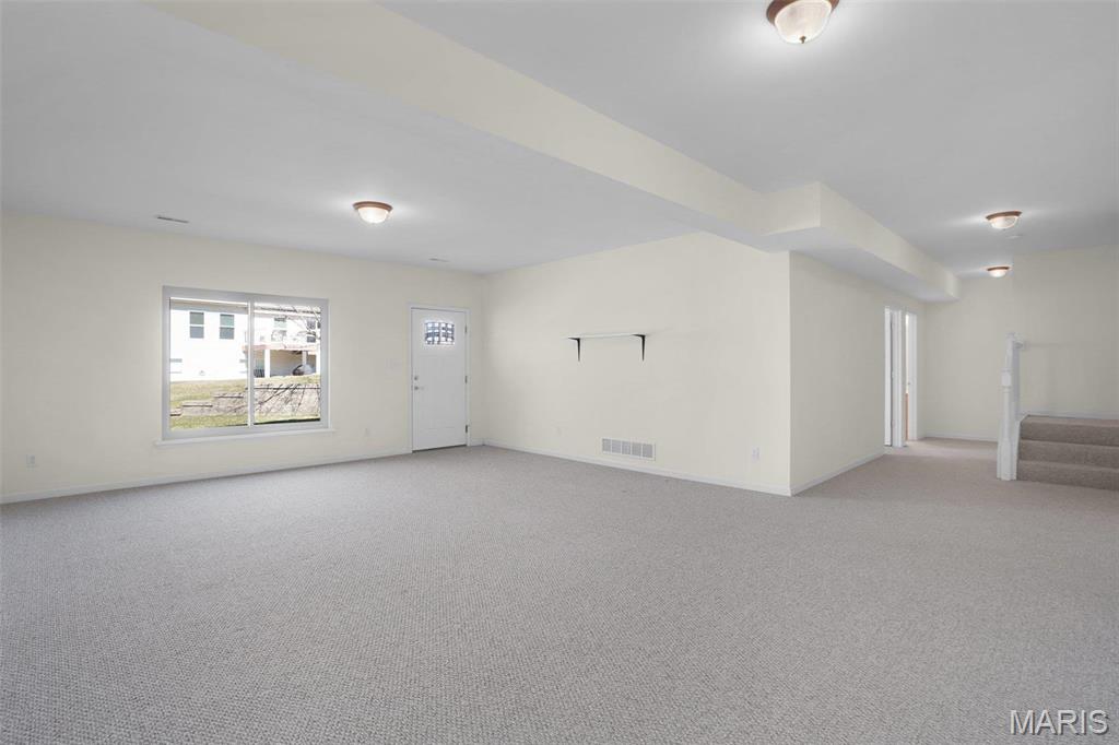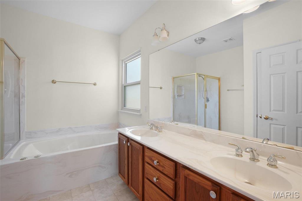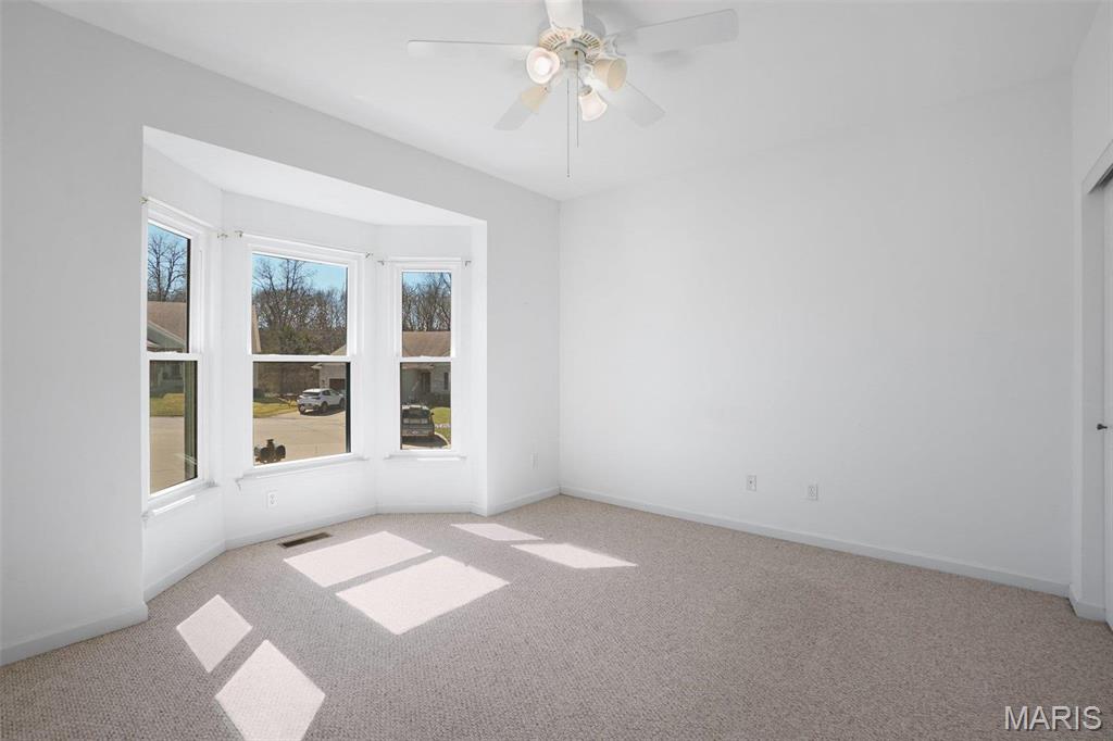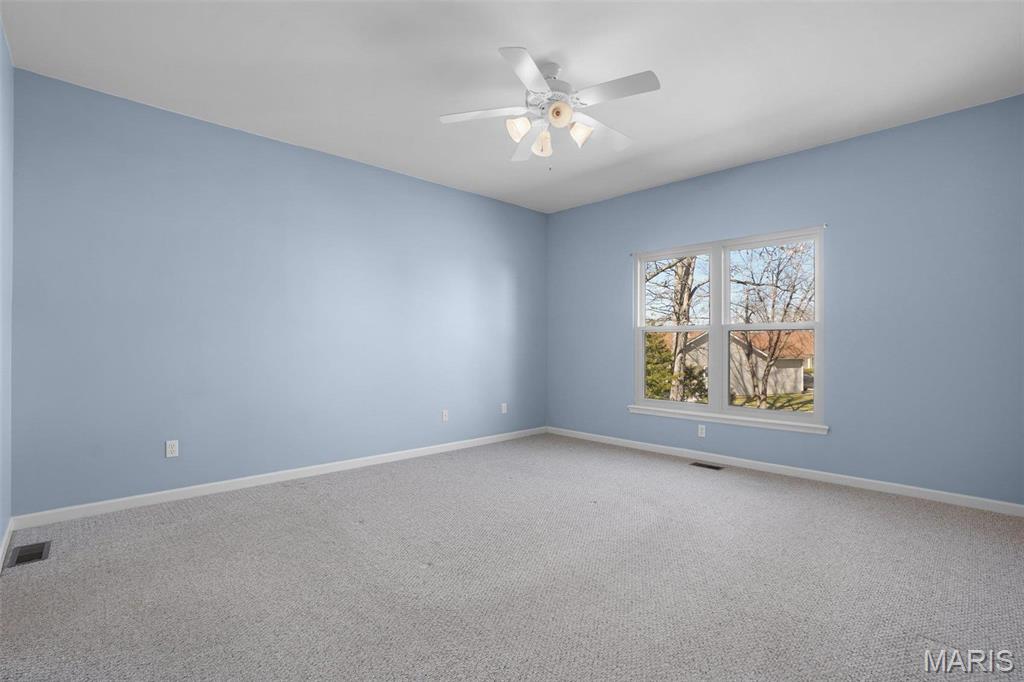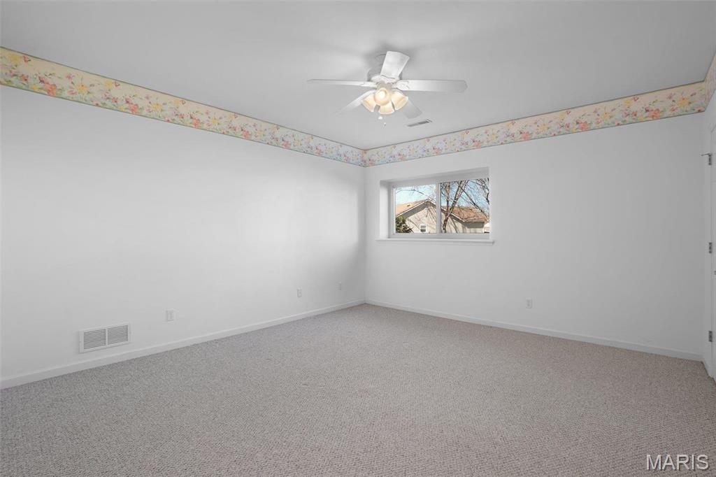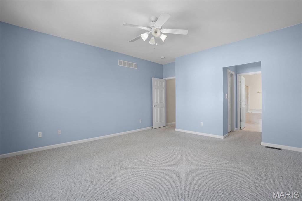A rare opportunity to live in this highly sought-after villa community located in the quaint town of New Melle with a Wentzville mailing address. This peaceful and quiet setting adjoins the Park at New Melle Lakes, offering access to walking trails, fishing and kayaking. This detached villa, situated on a cul-de-sac lot, features a spacious open floor plan with vaulted ceilings and abundant natural light. The primary ensuite includes a jetted tub, separate step-in shower and a double bowl vanity. The main floor guest room is tucked away with a charming bay window and full bath located conveniently across the hall. An open staircase leads to a generous family room, an additional bedroom, a full bath, a well designed storage area and access to a small patio. All bedrooms feature walk-in closets and plenty of direct light. The home is updated with newer tilt-in windows and roof was replaced in 2011. Location: Detached, Ground Level, Rural