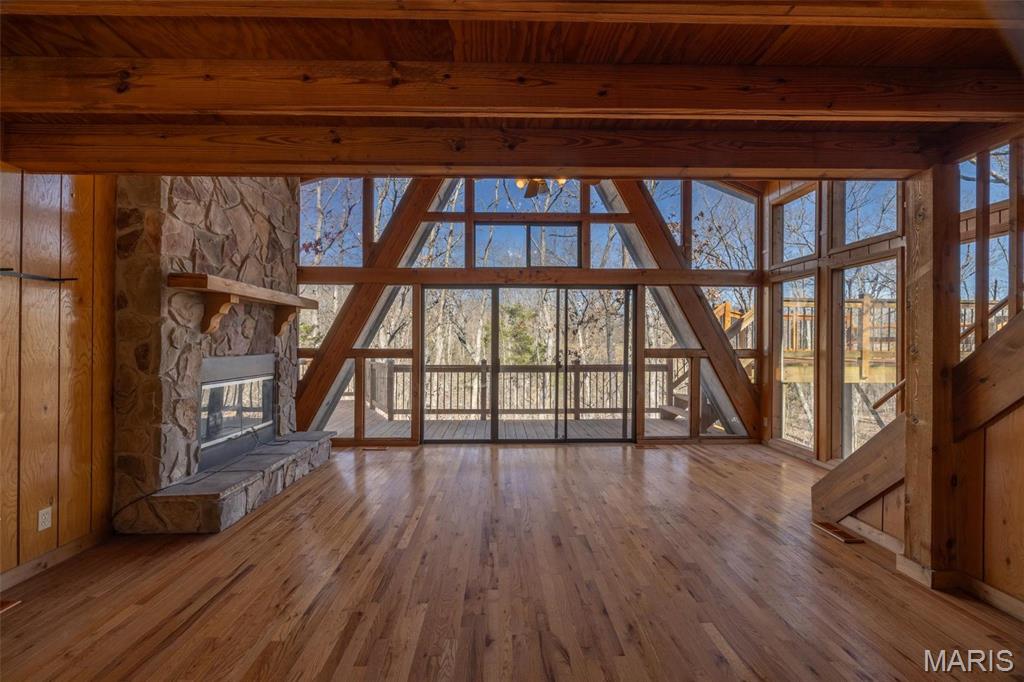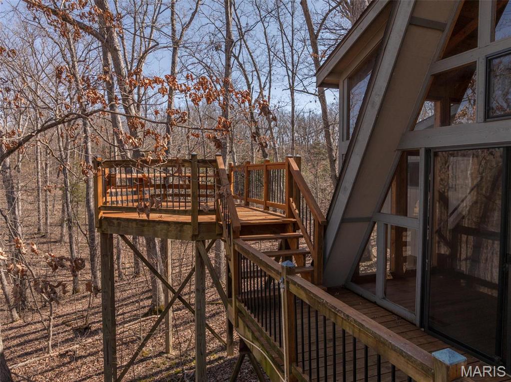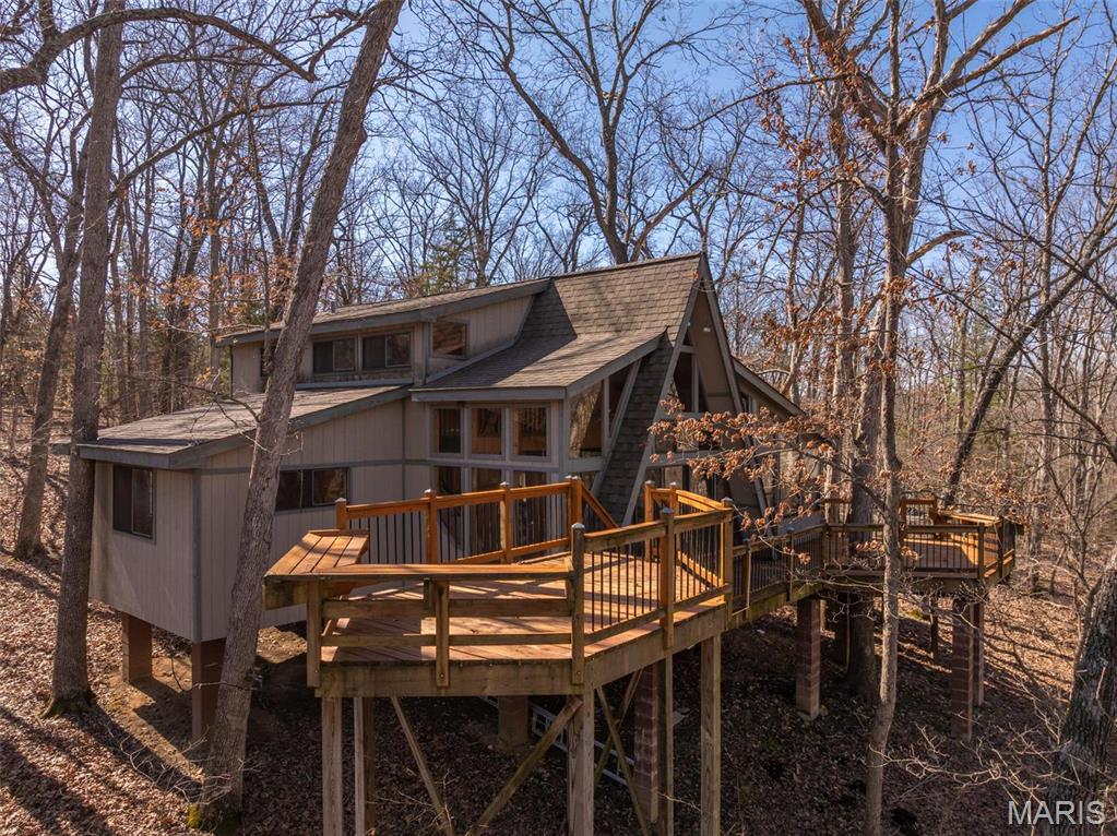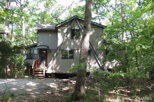 If you are looking for seclusion, this is it! Nestled on over 2.5 acres of mature hardwoods and plenty of dogwoods, this spacious Timberline chalet, offers plenty of privacy, yet easy access to lakes Grendel, Wiederschein and Alpine. Chalet features a spacious great room with hardwood floors and wood burning fireplace, ML bedroom suite, 4 season room, additional bedroom bath and open loft up. The outdoor deck has been expanded, allowing for an elevated tier, great spot for morning coffee and a perfect perch for watching the multitude of wildlife saunter by. Chalet is on sewer, (W/D included) hard surface driveway allows for easy in and out. Suitable for Bed/Brk