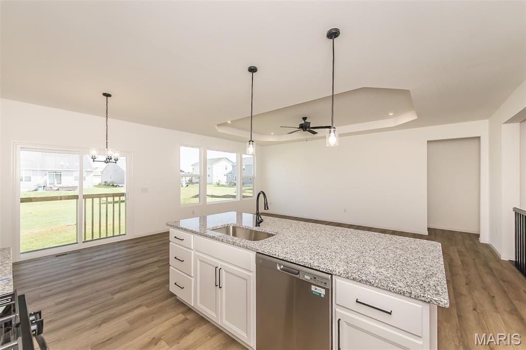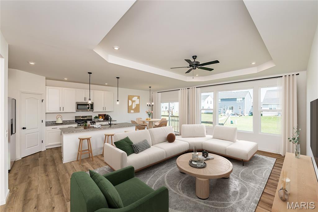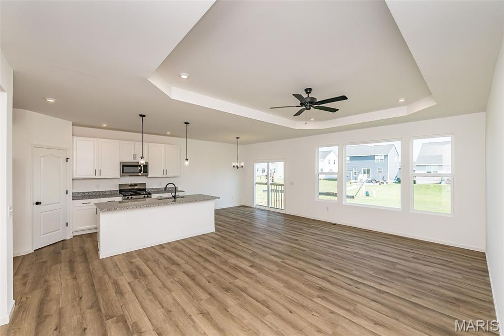 Gorgeous new DaVinci Coastal Cottage plan by Fischer Homes in beautiful Riverdale featuring a welcoming covered front porch. Open concept design with a well appointed island kitchen with stainless steel appliances, upgraded cabinetry with 42-inch uppers and soft close hinges, gleaming granite counters, walk-in pantry and walk-out morning room and all open to the oversized family room with tray ceiling. Tucked away homeowners retreat includes an en suite with a garden tub, walk-in shower and large walk-in closet. There are 2 additional bedrooms with a full bathroom in between. Full basement with a full bath rough-in and an expanded 2-bay garage.