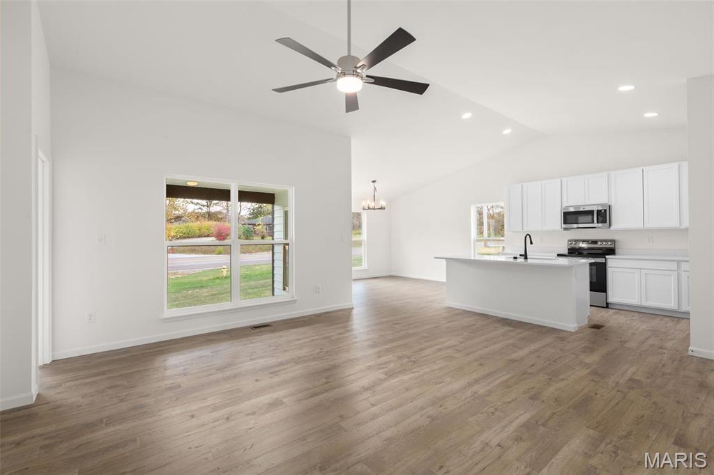 New McBride Homes Aspen II 3BR, 2BA ranch-style home will be ready this fall! Craftsman exterior! Enjoy an open floorplan with vaulted ceiling, 6ft windows, & beautiful wood laminate flooring in main living areas. The kitchen has a large island w/breakfast bar, level 4 Brellin White 42” cabinets, quartz countertops, stainless steel GE appliances, & large walk-in pantry. The dining area has a sliding glass door that leads to a covered future patio area w/ceiling fan prewire. The master suite has a large window, dual closets, & private master bath w/double sinks & 5’ walk-in shower. Other extras include main flr laundry, ¾ bath rough in at LL, matte black lighting & plumbing fixtures, six panel white interior doors, plus exterior coach lights. Elm Crossing is a secluded, peaceful community with 33 homesites on a private cul-de-sac minutes from New Town and top schools. Enjoy peace of mind with McBride Homes’ 10 yr builders warranty & incredible customer service. Similar photos shown.