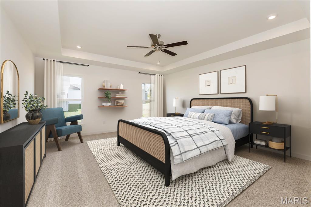 48 HOUR FLASH SALE NOW LIVE! Stunning new Blair Coastal Classic plan by Fischer Homes in beautiful Streets of Caledonia featuring a welcoming covered front porch. Once inside you'll find high ceilings and a private study with double doors just off the foyer. Open concept, island kitchen with stainless steel appliances, upgraded cabinetry with 42-inch uppers and soft close hinges, durable quartz counters, walk-in pantry and a walk-out breakfast room all open to the dramatic 2-story family room with corner fireplace. Included rec room on step down level. The primary suite is on its own level with an en suite with a double bowl vanity, garden tub, separate walk-in shower and oversized walk-in closet. Laundry room is on this level. There remaining bedrooms on the top floor share a centrally located hall bathroom. Full walk-out basement with full bath rough-in and a 2-bay garage. Some photos have been virtually staged.