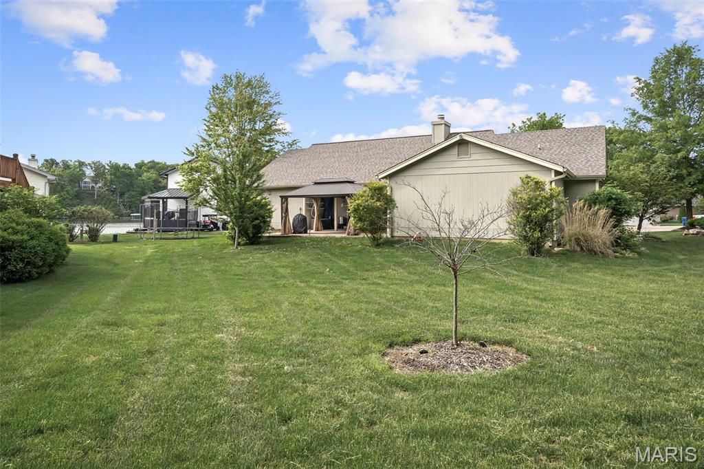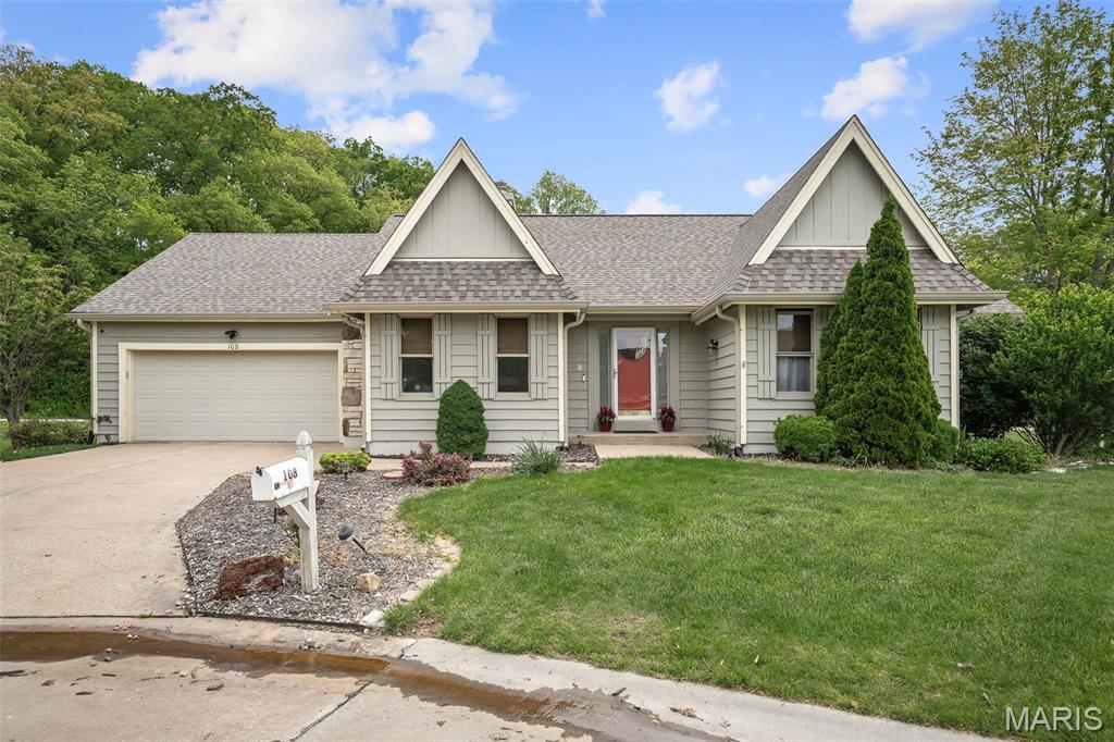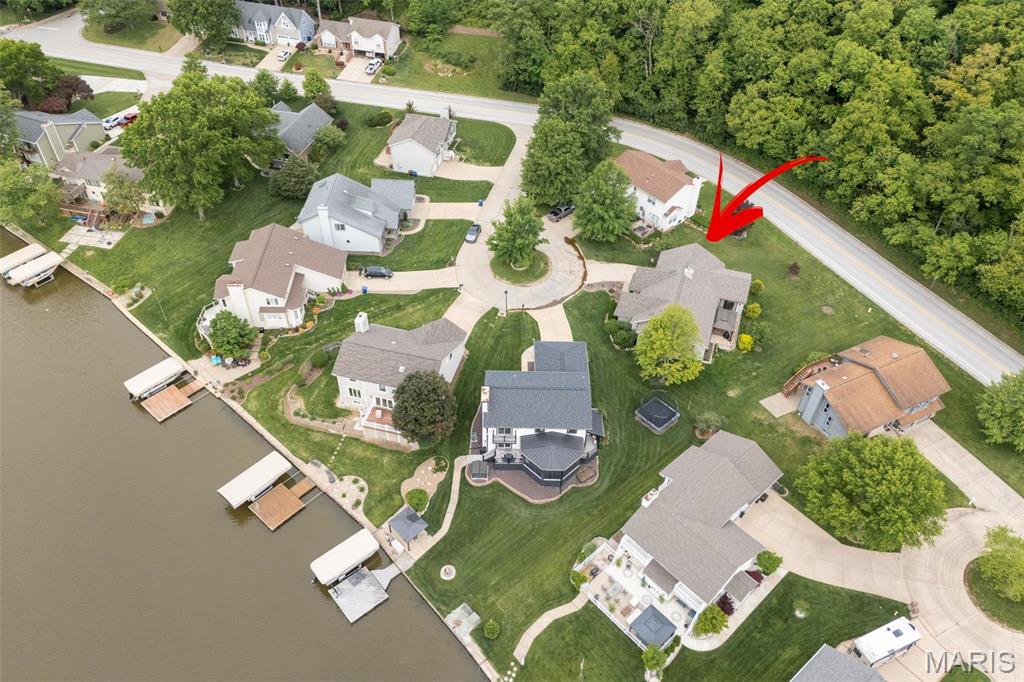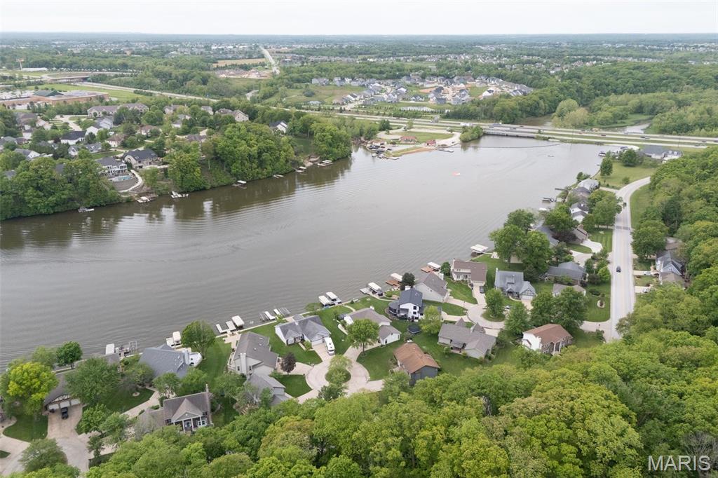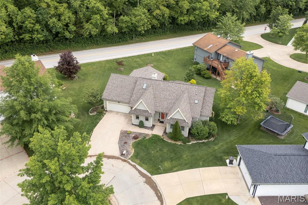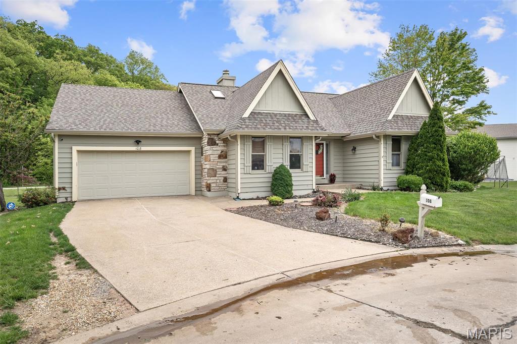 Stop the car! Updated 4 bedroom, 2 bath home tucked away in a quiet cul de sac with lake views. Cozy spacious great room boasts soaring vaulted ceilings w/wood beam & stone fireplace. The galley kitchen features granite counter tops, backsplash, a skylight and SS appliances including the fridge that STAYS. Formal dining room and convenient main floor laundry. 4 spacious bedrooms each with a ceiling fan. The master bedroom has a slider leading out to the patio. The lower level is partially finished and would make a great rec room, exercise area or family room. New premium laminate flooring (2023). New roof, gutters and gutter guards (2024). Some cedar siding replaced (2023). HVAC 7 yrs old. Enjoy all of Lake St Louis's SUPERB amenities including 2 lakes, beach, pool, tennis courts, golf, water sports/clubs & fun year-round events. Easy access to 70 or 40/64. More than a home...it's a lifestyle! See today before the sign reads SOLD!!