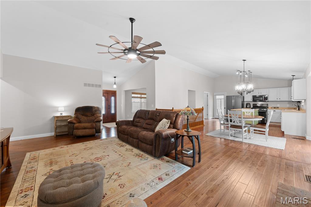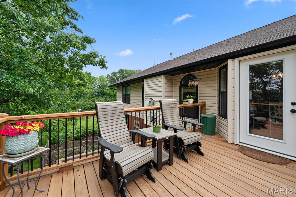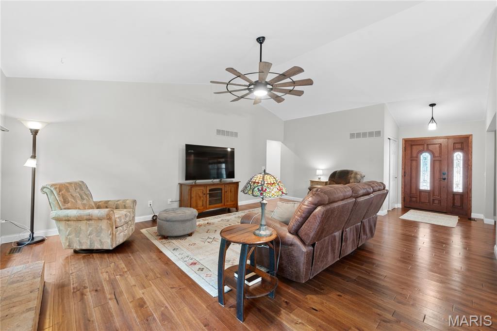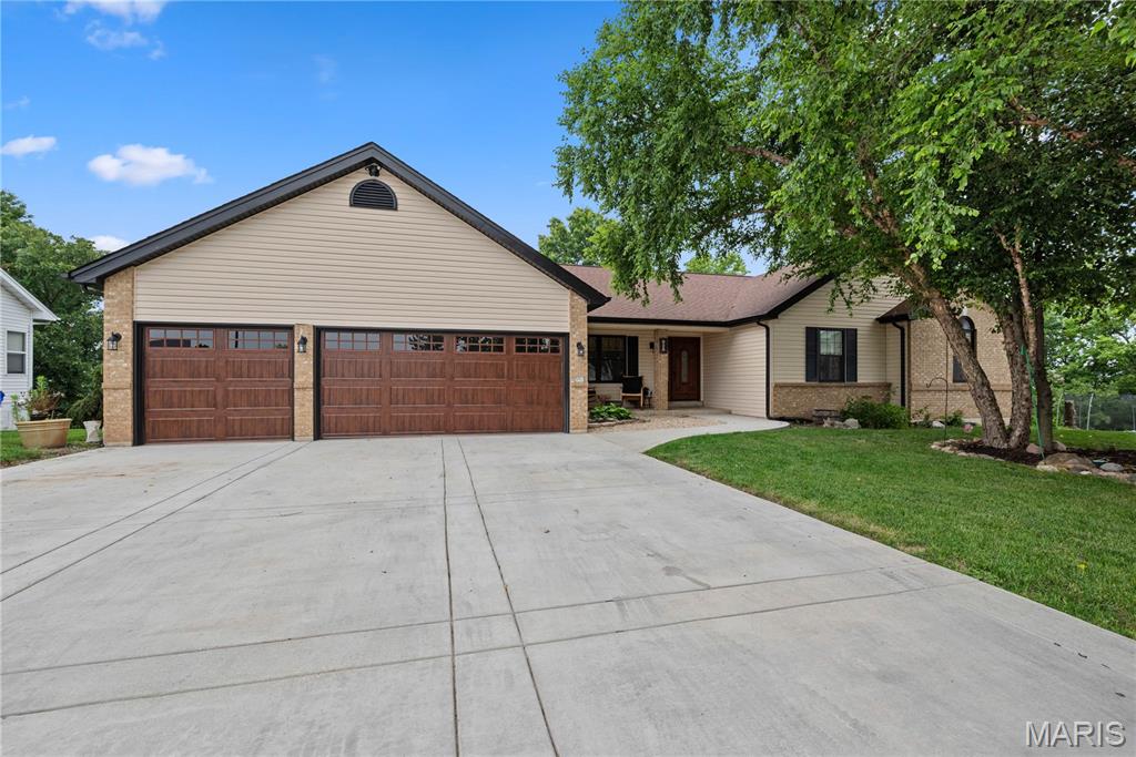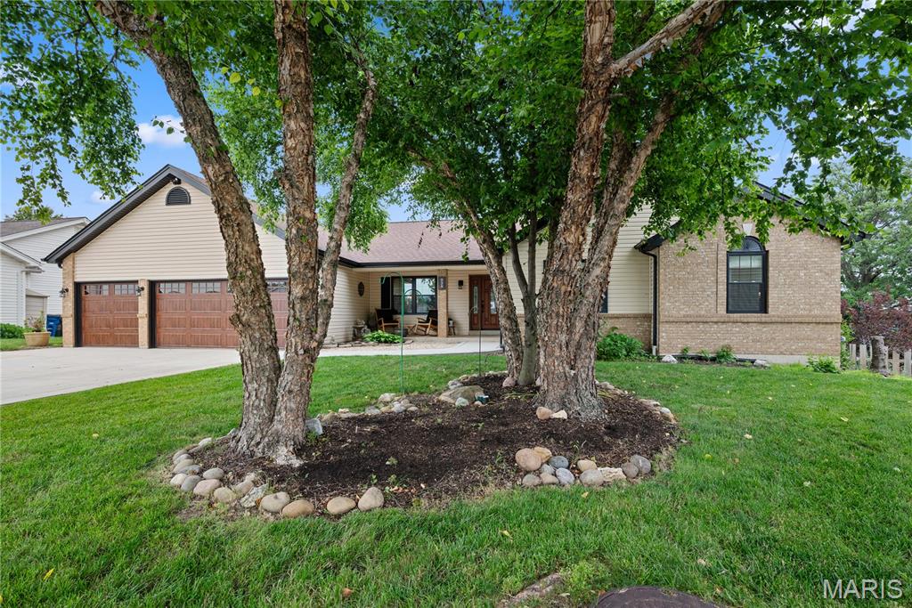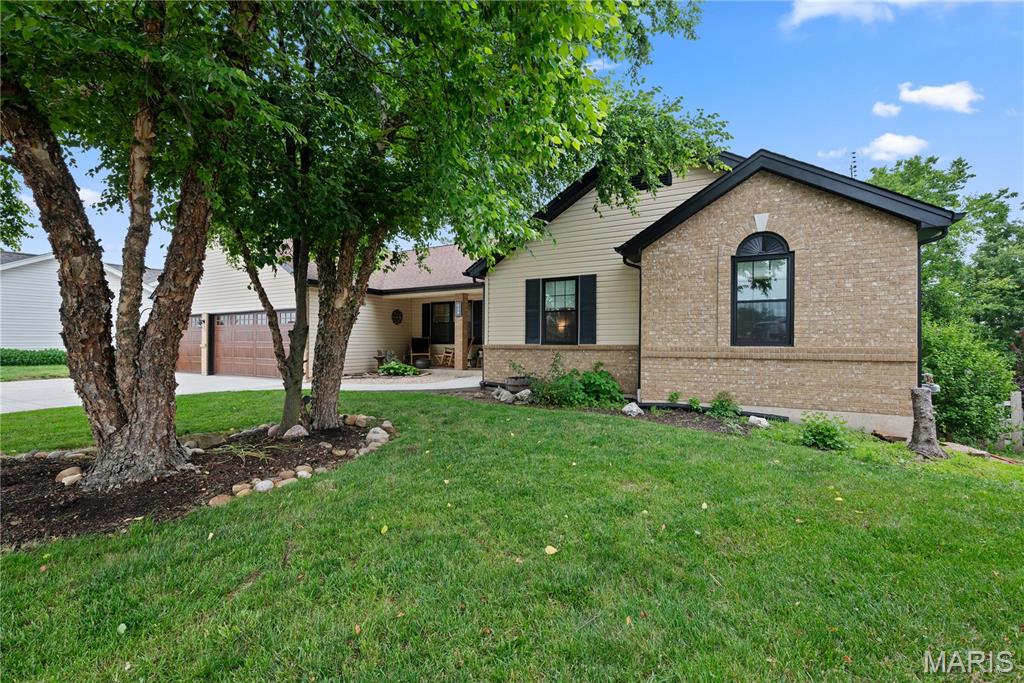 THIS IS THE 3-Car RANCH FLOORPLAN YOU'VE BEEN WAITING FOR! 3 Bedroom + 2 Baths= A LOT TO LOVE! Over 1,720 sq ft of Finished Living Space on a .29 acre Cul-de-Sac Lot with TREES! Wentzville LIBERTY Schools! VAULTED Ceilings throughout Main Living Areas! Beautiful Hardwood & Handscraped Wood Plank Floors thru out Main Level! Front Room perfect for Office or Dining! Great Room w/ Gas Fireplace with Brick Surround & Wood Mantle flanked with 2 Full View Palladian Windows & Designer Ceiling Fan & Light. Enjoy the views from the HUGE Cedar Deck with Open & Covered areas- perfect for relaxing & grilling! OPEN Kitchen w/ Wood Cabinets, Island, NEWER Graphite SS Appliances. Breakfast Room with Bay Window! Owners Suite with WalkIn Closet! UPDATED 2025 Owners Bath w/ 6x12 Tile Floor, Adult Height 2 Sink Vanity, Linen, Soaking Tub & StepIn Shower! Bed #2 & #3 share a Full Bath. Main Floor Laundry with Shelving & HUGE Pantry Closet! Wood Spindle Stairs leads to the Lower Level featuring Windows, Full Glass French Doors, Hobby Room with Electric & Utility Sink & lots of Storage. Fully Fenced Backyard features Stamped Patio, Designer Stone Accent Wall, Landscaping Wall & Gardens! 3 Car 25’ Deep Garage with Man Door, Workbench, Cabinets & addl Electric. Carpet- 2025. Black Exterior Windows, Extra Wide Concrete Driveway & Designer Wood Look Garage Doors-2024! In the desirable Villages of Bainbridge Neighborhood with POOL & Walking Paths & direct path to walk Inverness too! A MUST SEE!