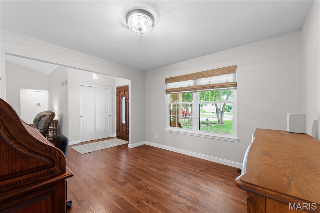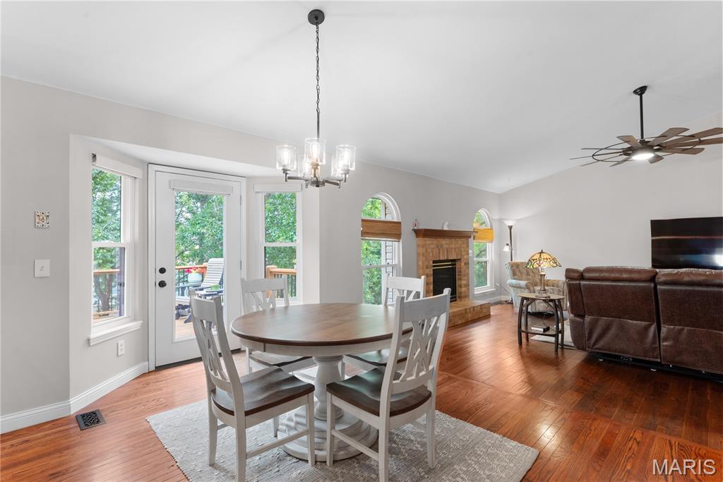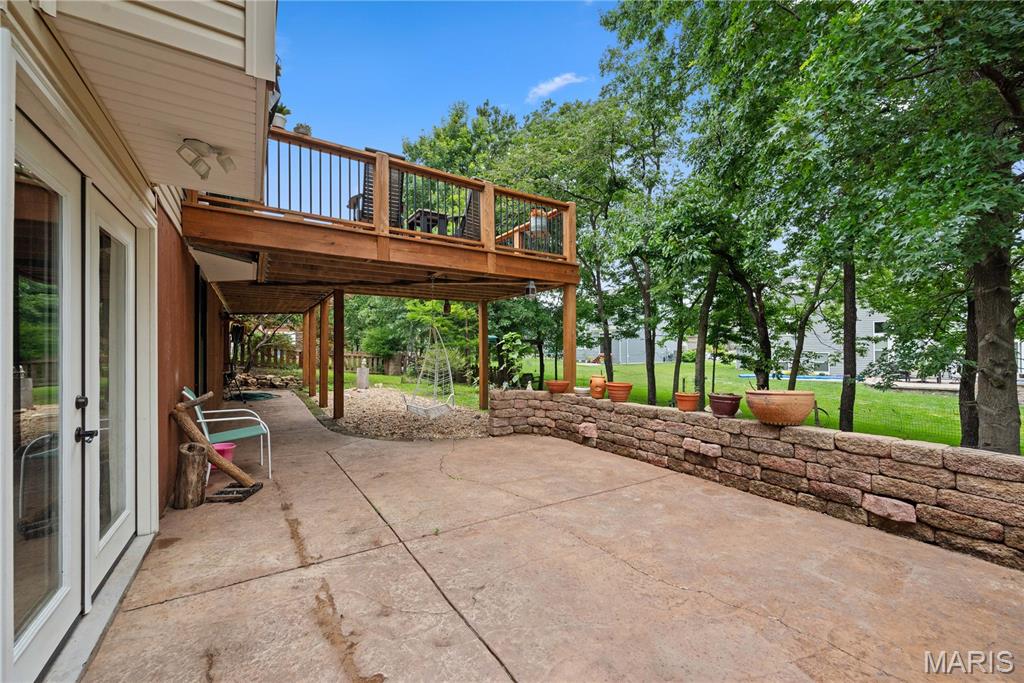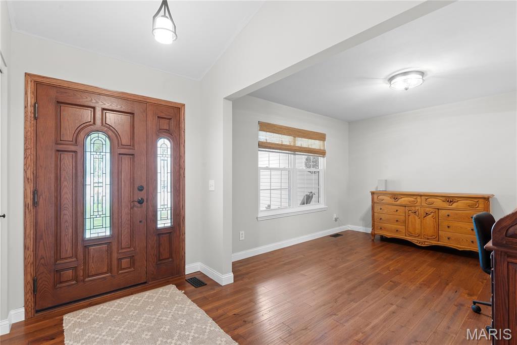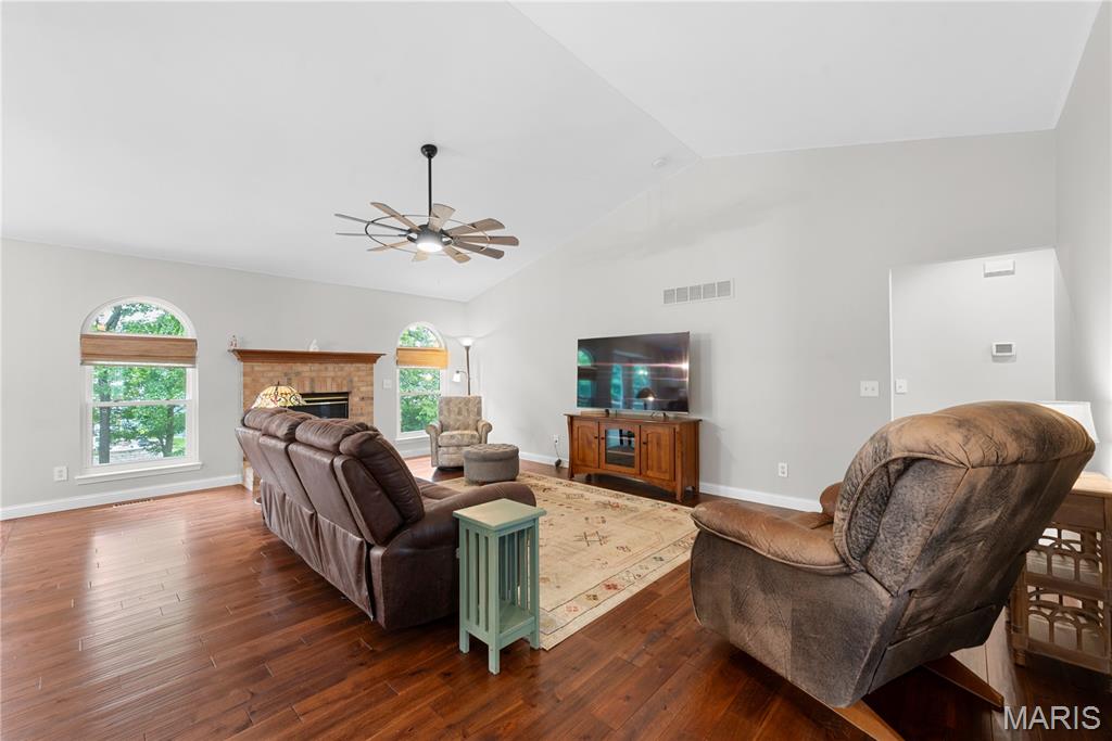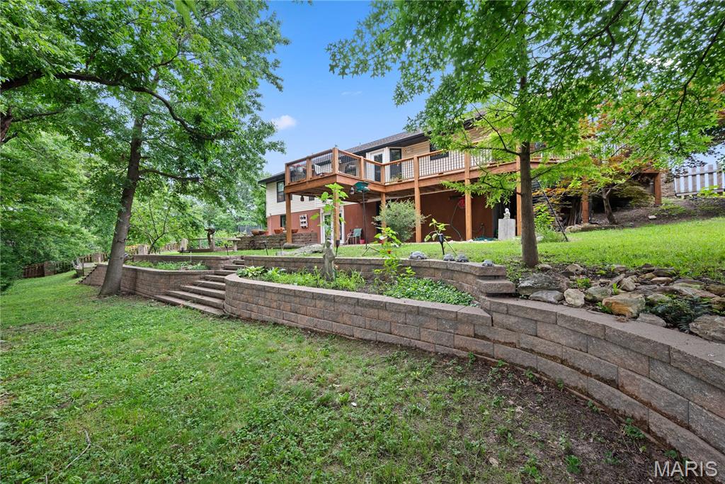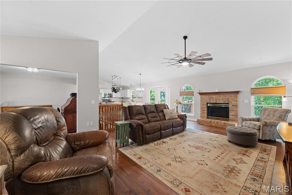 THIS IS THE 3-Car RANCH FLOORPLAN YOU'VE BEEN WAITING FOR! 3 Bedroom + 2 Baths= A LOT TO LOVE! Over 1,720 sq ft of Finished Living Space on a .29 acre Cul-de-Sac Lot with TREES! Wentzville LIBERTY Schools! VAULTED Ceilings throughout Main Living Areas! Beautiful Hardwood & Handscraped Wood Plank Floors thru out Main Level! Front Room perfect for Office or Dining! Great Room w/ Gas Fireplace with Brick Surround & Wood Mantle flanked with 2 Full View Palladian Windows & Designer Ceiling Fan & Light. Enjoy the views from the HUGE Cedar Deck with Open & Covered areas- perfect for relaxing & grilling! OPEN Kitchen w/ Wood Cabinets, Island, NEWER Graphite SS Appliances. Breakfast Room with Bay Window! Owners Suite with WalkIn Closet! UPDATED 2025 Owners Bath w/ 6x12 Tile Floor, Adult Height 2 Sink Vanity, Linen, Soaking Tub & StepIn Shower! Bed #2 & #3 share a Full Bath. Main Floor Laundry with Shelving & HUGE Pantry Closet! Wood Spindle Stairs leads to the Lower Level featuring Windows, Full Glass French Doors, Hobby Room with Electric & Utility Sink & lots of Storage. Fully Fenced Backyard features Stamped Patio, Designer Stone Accent Wall, Landscaping Wall & Gardens! 3 Car 25’ Deep Garage with Man Door, Workbench, Cabinets & addl Electric. Carpet- 2025. Black Exterior Windows, Extra Wide Concrete Driveway & Designer Wood Look Garage Doors-2024! In the desirable Villages of Bainbridge Neighborhood with POOL & Walking Paths & direct path to walk Inverness too! A MUST SEE!