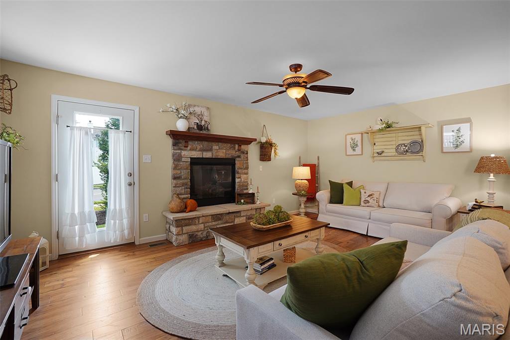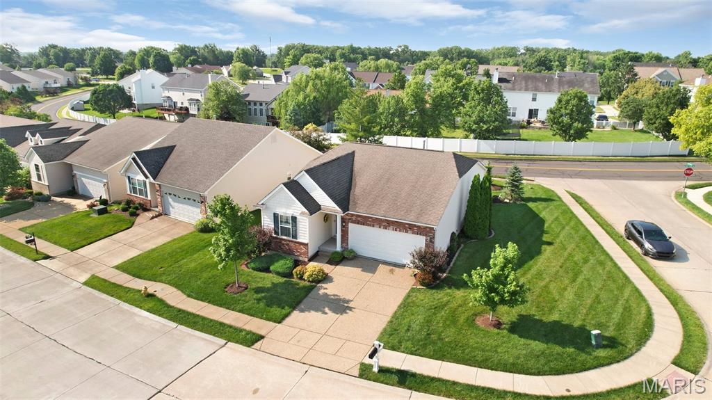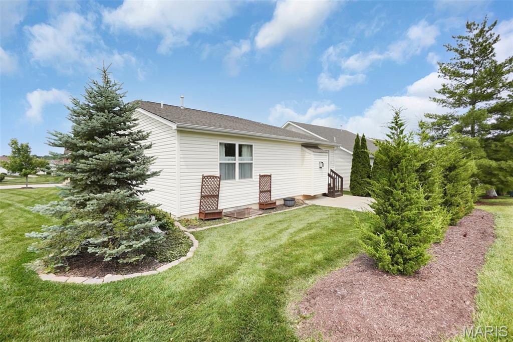 Discover comfort and convenience in this well-maintained 2-bedroom, 2-bathroom detached villa situated on a desirable corner lot in Wentzville. Featuring beautiful engineered hardwood floors and an open floor plan, this home offers a spacious and functional layout ideal for both everyday living and entertaining. The kitchen is equipped with custom cabinetry, newer appliances, and ample counter space—perfect for any home cook. Main floor laundry adds ease to your daily routine, while the private patio provides a great outdoor space to relax or entertain. Located just minutes from shopping, restaurants, and major highways, this home combines low-maintenance living with an unbeatable location. Whether you're looking for your first home or planning to downsize, this villa offers a practical and stylish option in one of Wentzville’s most convenient areas. Don’t miss the opportunity to make it yours!